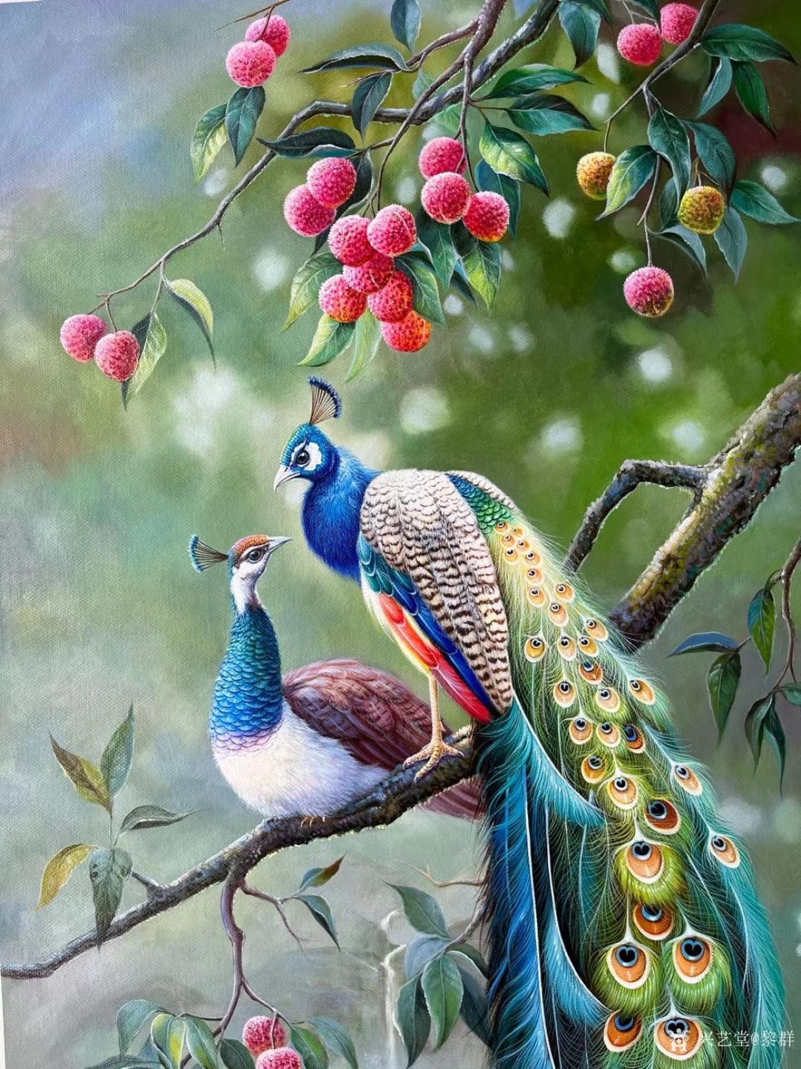 油画作品 荔枝孔雀图 油画 黎群 兴艺堂